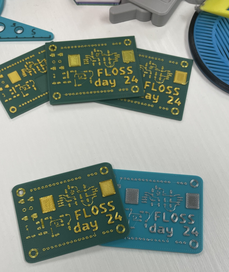 All participants took home a FLOSS Day 3D printed keychain. On top of that, a selection of FLOSS project stickers were printed and made available.